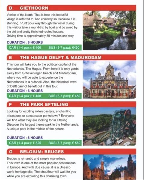 Taxi rides to cities in the Netherlands and Europa